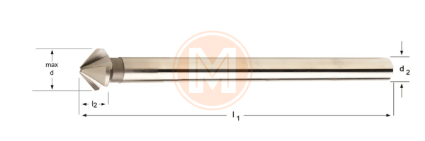 HSS Verzinkboor 90°, extra lange cilindrische schacht.