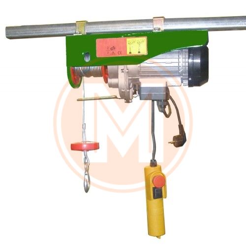 - De lier wordt standaard geleverd met 12 mtr. draaiarm staaldraad, hangdrukknopschakelaar met noodstop aan 1,5 mtr. kabel en 0,5 mtr. voedingskabel met stekker.