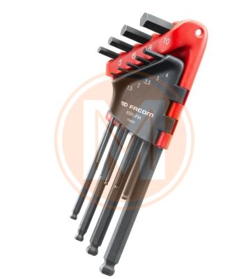 Facom 83SH.JP9A Set 9 lange inbussleutels, ronde kop in houder