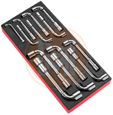 Module van 13 gebogen open pijpsleutels met OGV®-profiel, 6-kant op een inlay van foam