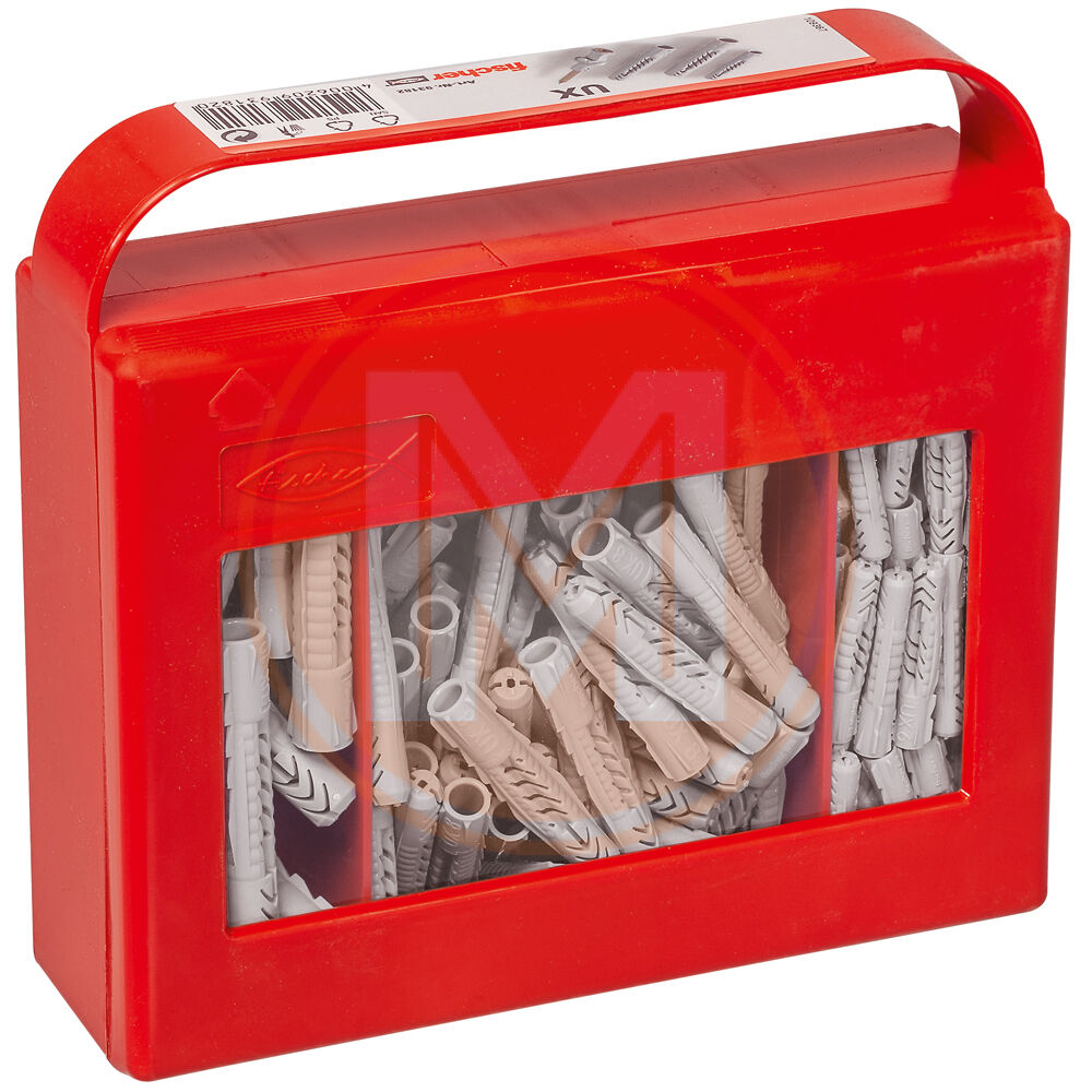 - Bevat een sortering van 100 pluggen UX 6 x 35, 70 pluggen UX 8 x 50, 20 pluggen UX 10 x 60