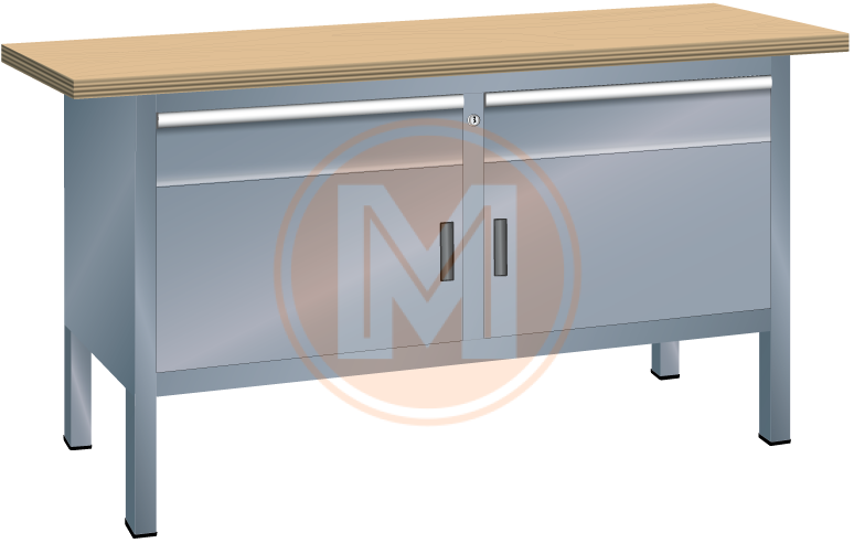 Werkbank, B1500 x D700 x H840, 2 lades, 2 vleugeldeuren