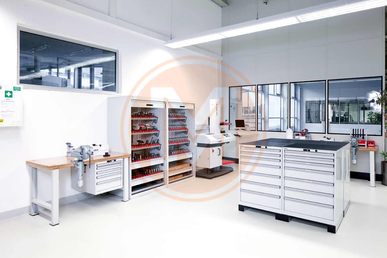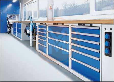 Elk werkblad is standaard af fabriek voorbereid voor montage van schuifladenkast(en) in elk mogelijke configuratie. U kunt de werkbank, indien nodig naderhand dus snel en eenvoudig aanpassen of uitbreiden.