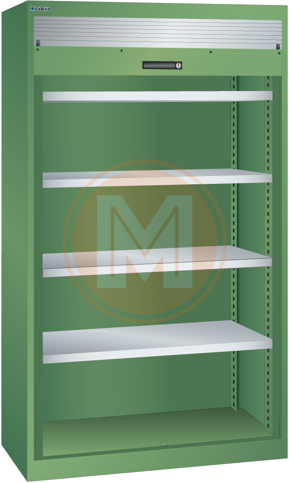 Rolluikkasten van Lista geven u toegang tot de opgeslagen items zonder dat er deuren uitsteken, een ideale oplossing voor kleine, smalle ruimten. Het soepel lopende rolluik van PVC is met één hand te bedienen en fixeert op elke hoogte. (bij vertikale rolluiken). De kasten met een horizontaal rolluik zijn door de maximale legbordbelasting van 32 of 47 kg meer geschikt voor documentenopslag of kantooromgeving.