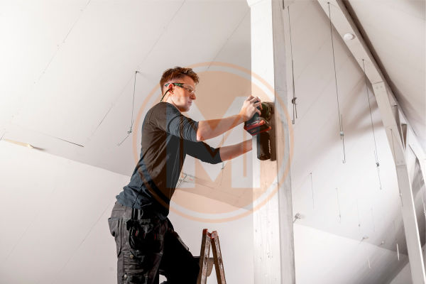 - Zorgvuldige geleiding van de schuurmachine, dichtbij het oppervlak, door de geringe bouwhoogte