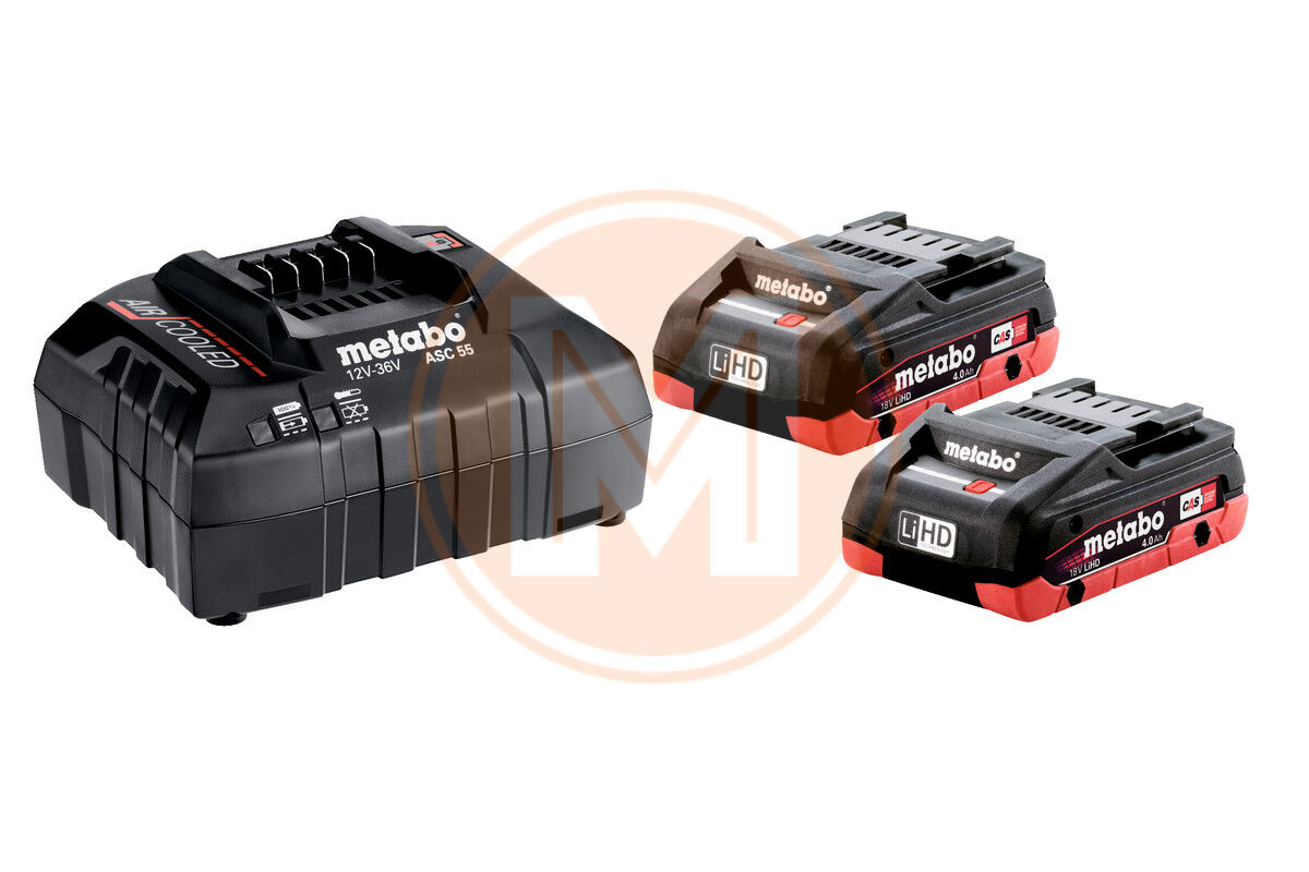 Metabo BASISSET 18 V: 2 X LIHD 4.0 AH, ASC 55 (685163000) Basis-set 18V 2 accu's 4,0 ah + lader