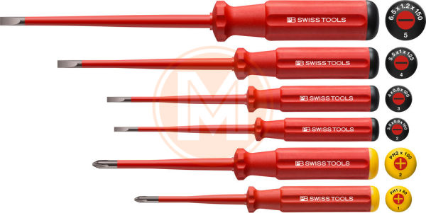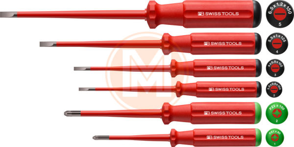 - Classic VDE Slim schroevendraaiers, volledig geïsoleerd tot 1000 V AC / 1500 V DC volgens IEC/EN 60900