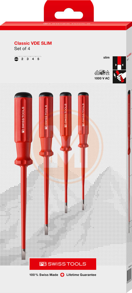 - Classic VDE schroevendraaierset SLIM, volledig geïsoleerd tot 1000 V AC / 1500 V DC volgens IEC/EN 60900