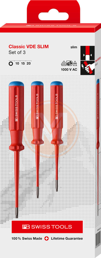 - Classic VDE schroevendraaierset SLIM, volledig geïsoleerd tot 1000 V AC / 1500 V DC volgens IEC/EN 60900
