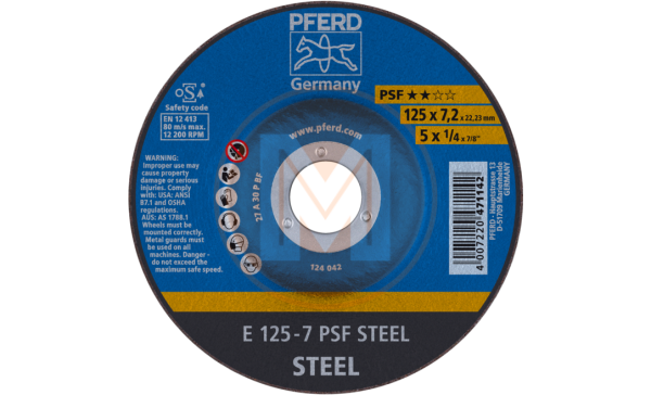 | Artikelnummer: 41-10457-470 | Artikelnummer fabrikant: E 125-7 A 30 P PSF (62012634) | Diameter (mm): 125 | Dikte (mm): 7,2 | Asmaat (mm): 22,23 | Toerental maximaal: 12200 rpm | € 3,93 |