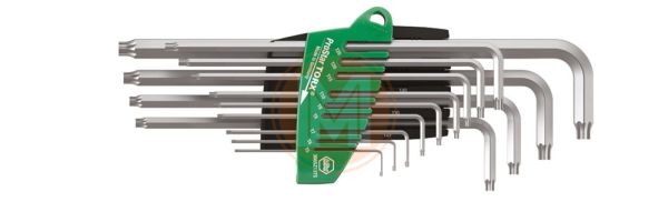 1 x TORX®-stiftsleutel, lang (366 TS) T5, 72 mm, 13 mm, 1 x TORX®-stiftsleutel, lang (366 TS) T6, 80 mm, 15 mm, 1 x TORX®-stiftsleutel, lang (366 TS) T7, 88 mm, 18 mm, 1 x TORX®-stiftsleutel, lang (366 TS) T8, 101 mm, 20 mm, 1 x TORX®-stiftsleutel, lang (366 TS) T9, 111 mm, 21 mm, 1 x TORX®-stiftsleutel, lang (366 TS) T10, 121 mm, 23 mm, 1 x TORX®-stiftsleutel, lang (366 TS) T15, 136 mm, 27 mm, 1 x TORX®-stiftsleutel, lang (366 TS) T20, 148 mm, 29 mm, 1 x TORX®-stiftsleutel, lang (366 TS) T25, 163 mm, 33 mm, 1 x TORX®-stiftsleutel, lang (366 TS) T27, 176 mm, 36 mm, 1 x TORX®-stiftsleutel, lang (366 TS) T30, 191 mm, 38 mm, 1 x TORX®-stiftsleutel, lang (366 TS) T40, 210 mm, 43 mm, 1 x TORX®-stiftsleutel, lang (366 TS) T45, 232 mm, 49 mm